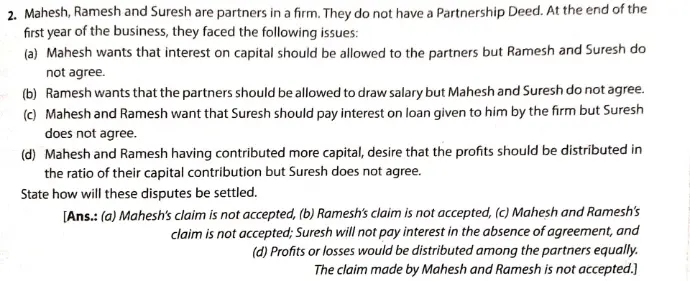 2. Mahesh, Ramesh and Suresh are partners in a firm. They do not have a Partnership Deed.