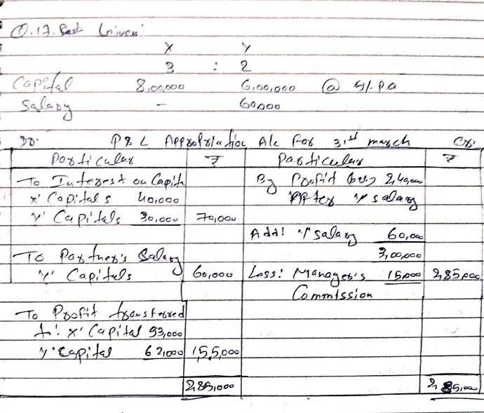 Profit for the year ended 31st March, 2024 before interest on capital but after charging Y’s salary was ₹2,40,000.