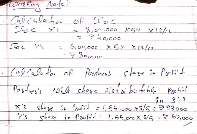It was agreed to allow and charge interest @ 8% p.a. Partnership Deed provided to allow interest on capital @ 10% p.a. Interest on Drawings was charged ₹ 5,000 each.