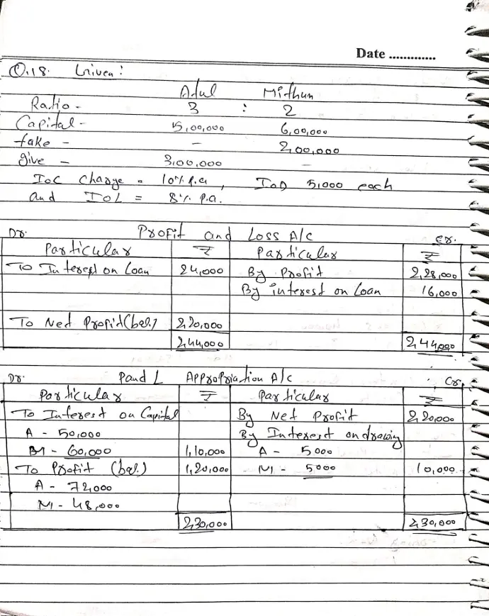 Capital Accounts (Fixed): Atul – ₹ 5,00,000 and Mithun – ₹ 6,00,000.