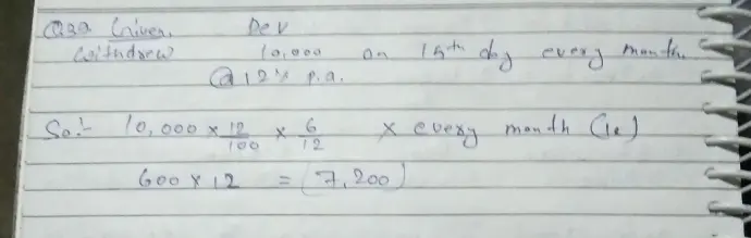 39. Dev withdrew ₹ 10,000 on 15th day of every month. Interest on drawings was to be charged @ 12% per annum. (CBSE 2019)